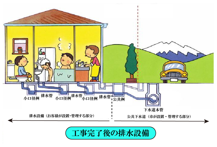 工事完成後、市役所の検査を受けて工事完了となります。 |